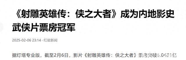 恶评如潮的《射雕:侠之大者》果然被称为内地影史武侠片票房冠军! 是凶事喜办照旧自欺欺东说念主?