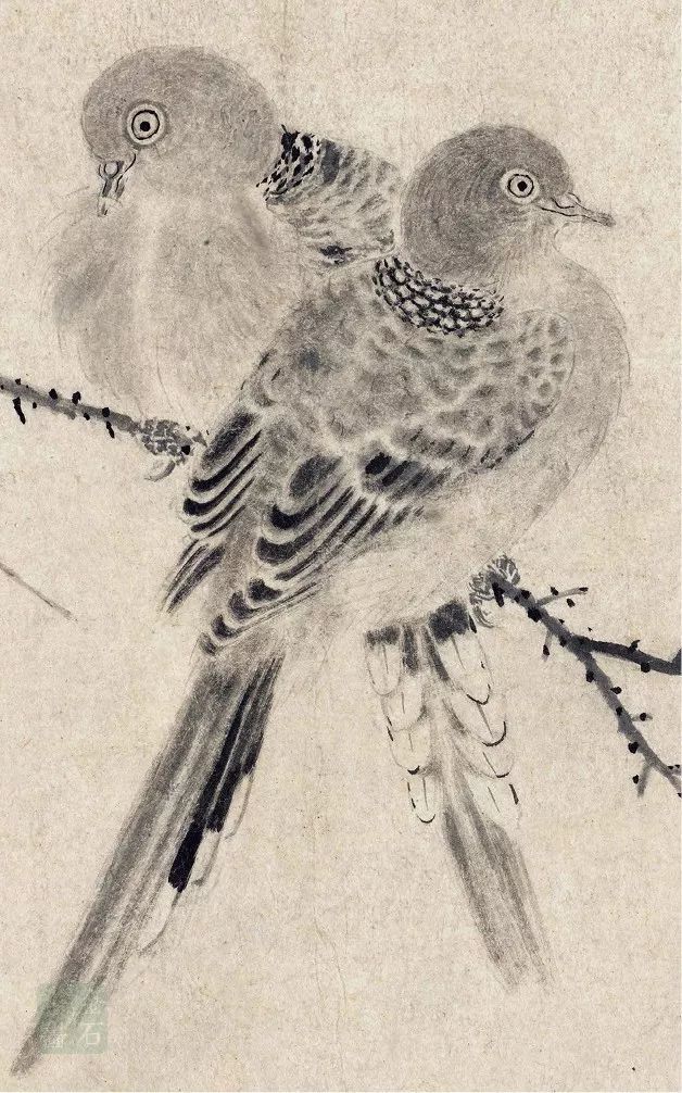 第二种画法略为疏放稍带写意的笔意,奏凯以色调点染,一次完成。第三种画法是先深重色,未乾前以其它近似的色调点染局部,近似破墨因为使用熟纸,故产生半和会后果或略带斑驳的色调变化。